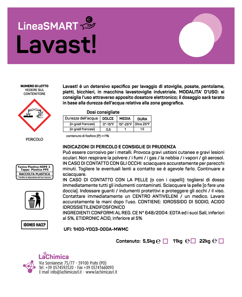 | Uso | Prodotto da utilizzare attraverso l’uso di apposito dosatore elettronico |