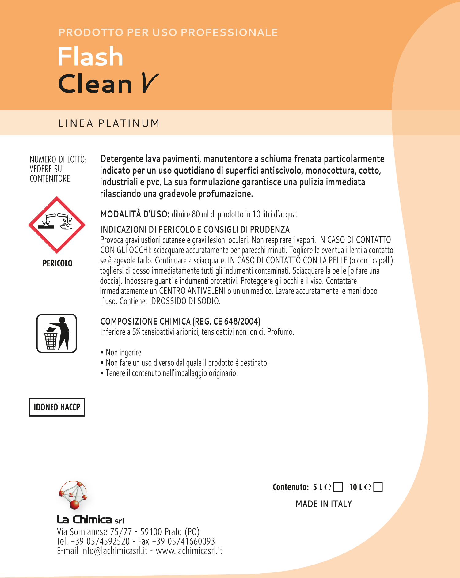 | Dosaggio | diluire 80 ml di prodotto in 10 litri di acqua |
