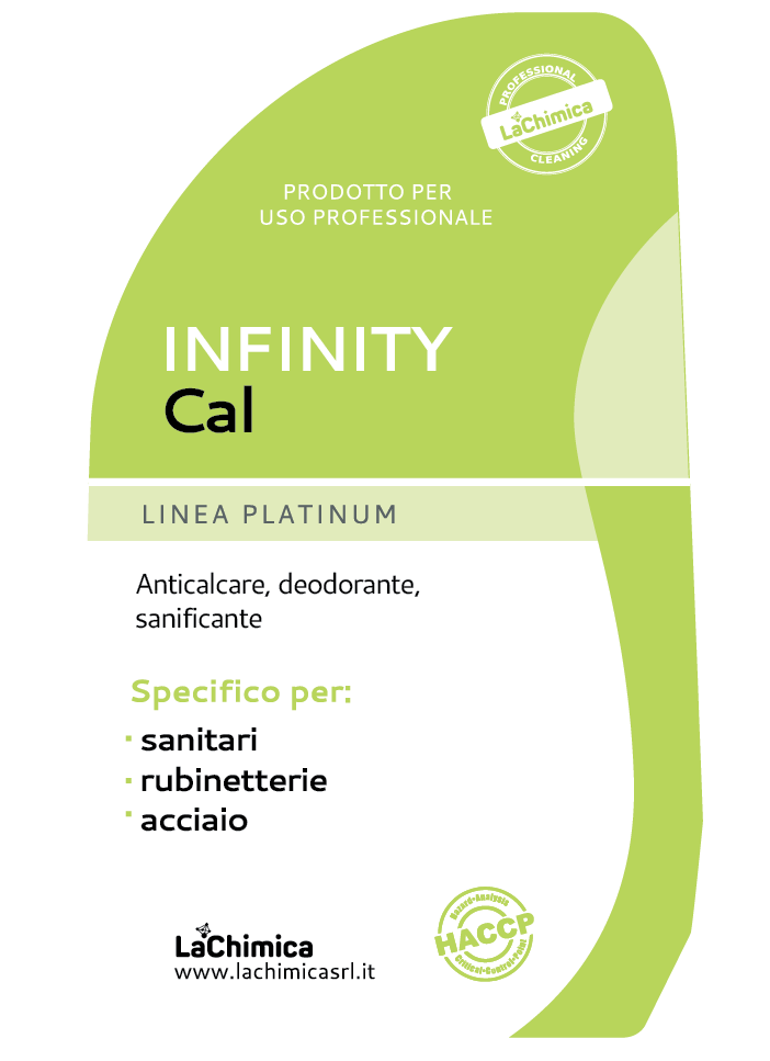 | Specifiche | Infinity Cal anticalcare a base di acido fosforico ideale per la disincrostazione di lavandini, sanitari, docce e rivestimenti ceramici. Non idoneo su marmi e derivati |